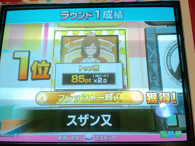 1Rの速答プレッシャーは途中まで1位だったものの痛恨だったのは最後の最後に誤答。これでひなさんに逆転される(´・ω・`)