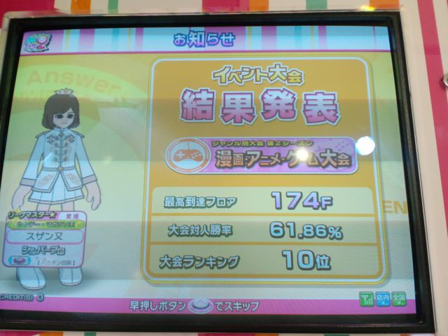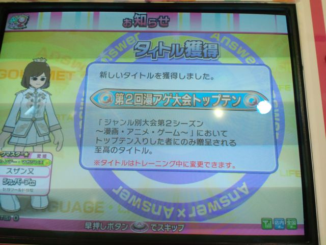 決勝ではSNOWさんに漫アゲのタイトルだけで正解取られてからgdgdになってしまう(´・ω・`) たまらんなあ。