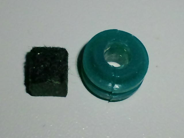 右がパッキン。左側はホワイトボード用のラーフル(黒板消し)を刻んだもの。