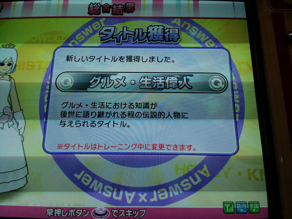 決勝は早押し勝負。押し合いで勝ったのは1問(´・ω・`)しかし、ALIさんの誤答の隙をついて勝利。1位。