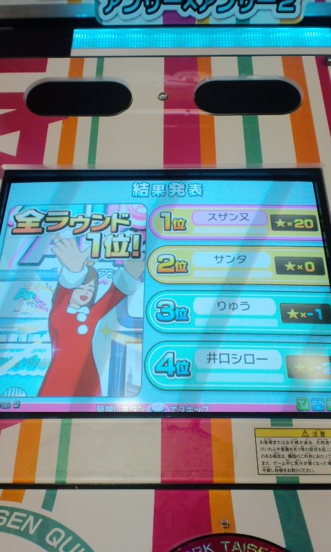 いぴげねいあさんには早押しを投げられ、1問目は先取するも残りを3連答されてしまい敗北・・・orz 2位